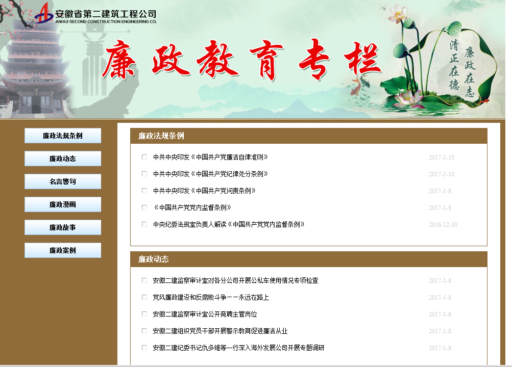 ΪʵÏÖÁ®Õþ½ÌÓýÊÂÇéÈÕ³ £»¯¡¢¶¯Ì¬»¯£¬Í¬Ê±ÍŽáÊ¡¹ú×Êί¡¢¼¯ÍżÍίÊÂÇéÒªÇ󣬾­ÓÉǰÆÚµÄ´´ÒâºÍÖÊÁÏÍøÂ磬ÔÚÐÅÏ¢²¿µÄ¶¦Á¦´ó¾ÙÖ§³ÖÏ£¬¹«Ë¾¼Íί¡¶Á®Õþ½ÌÓýרÀ¸¡·ÓÚ2017Äê1ÔÂ10ÈÕÕýʽÉÏÏß¡£