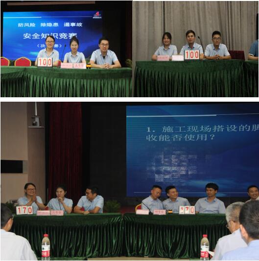 在2019年天下第18个“清静生产月”时代,为更好地增进集团公司宽大职工深入学习掌握行业清静生产相关执律例则及标准规范,认真贯彻落实“清静第一、预防为主、综合治理”目的,强化“清静为天  生命至上”理念,6月12日下昼,在集团公司三楼聚会室盛大举行“防危害、除隐患、遏事故”主题清静知识竞赛运动,共25支代表队参赛,公司清静总监曹建,总司理助理、工会副主席蒯家江带队参赛 。