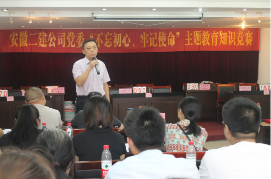 为进一步增强“不忘初心、切记使命”主题教育的加入度,营造优异的学习气氛和群众基础,做到宣布道育全笼罩,9月17日上午,安徽二建公司党委开展“不忘初心、切记使命”主题教育知识竞赛。所属党支部9只步队加入本次知识竞赛,公司有关向导、党群部分认真人、所属各党支部书记、团支部书记出席运动。