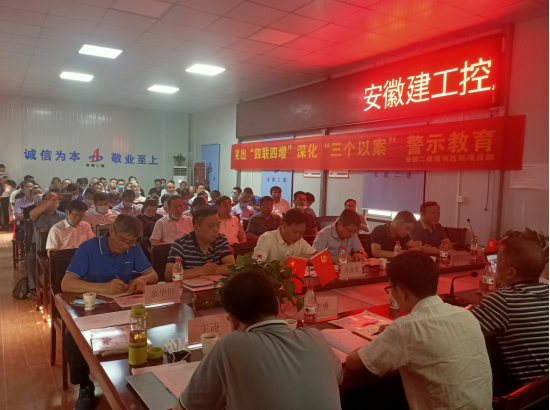 5月26日上午,建工控股党委委员、纪委书记宋志华等一行,深入安徽二建合肥丽丰璞羽西苑项目开展“三个以案”警示教育大宣讲、大调研、大督查运动,安徽二建向导班子成员及中层干部加入。
