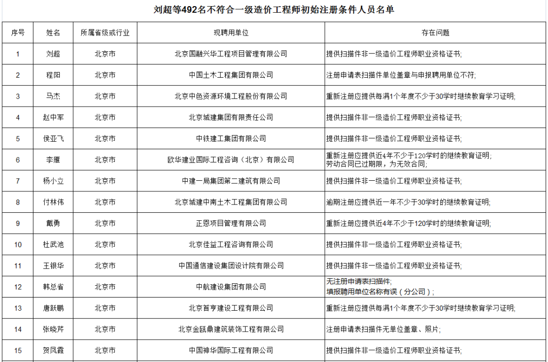 别的,还保存着“无注册申请表扫描件”、“逾期注册职员未提供继续教育学习证实”和“填报聘用单位名称有误”等问题,导致部分职员不切合初始注册条件 。