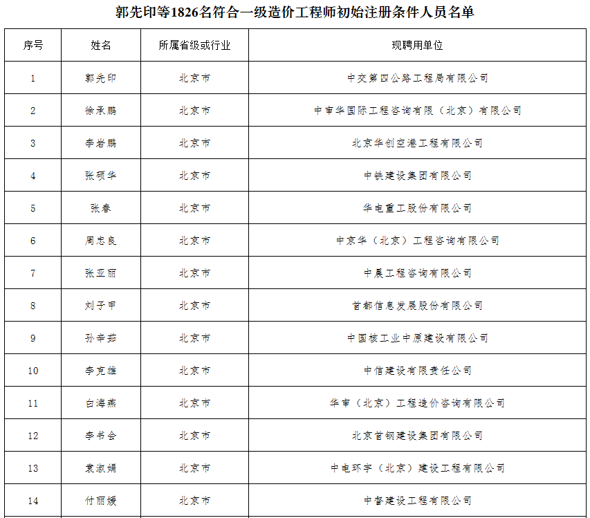 凭证《注册造价工程师管理步伐》的划定,经审核,1826人切合一级造价工程师初始注册条件、492人不切合一级造价工程师初始注册条件,现将名单予以公示,公示期为2020年10月9日至2020年10月21日 。