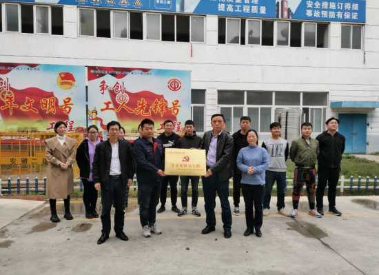 2020年11月18日,安徽二建党委副书记、纪委书记仇多维、党工部主任施用宏等一行赴蚌埠山香安顿房EPC项目对“党员先锋号”、“工人先锋号”、“青年文明号”的建设事情举行验收。