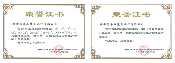 五年来,创开国家AAA级清静文明标准化工地2项,省级清静生产标准化树模工地24项、市级28项、集团级48项,安徽二建以匠人之心在一砖一瓦建成的楼宇之间,修建清静防地,建设优美生涯。