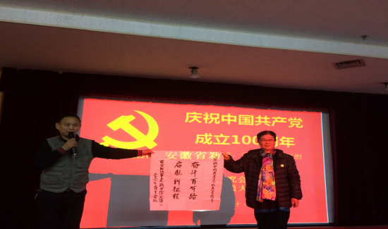 最后,安徽二建四分公司综合办主任郑娅作为代表讲话:四分公司自2020年10月与安徽省新四军历史研究会淮海委员会签署共建协议以来,开展过多次共建运动,深入一线项目举行党课宣讲、播放党史教育片,举行“结对共建,温暖前行”迎新晚会,以及写春联送祝福新春运动,传承了红色基因、弘扬了红色文化。值此百年华诞之际,四分公司与安徽省新四军历史研究会淮海委员会将进一步增强合作交流,配合推动党组织建设,牢牢围绕爱党爱国爱社会主义的主题,起劲探索结对生长的新路子,富厚组织运动新形式,一直拓宽合作新领域,力争结对共建尽快结出丰富效果。