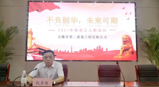 为资助新员工尽快相识公司的生长、制度及企业文化,熟悉相关岗位的事情要求,强化新员工的责恣意识,增进团队凝聚力。7月9日,安徽二建新员工入职培训在公司新聚会室举行,共80余人加入培训。