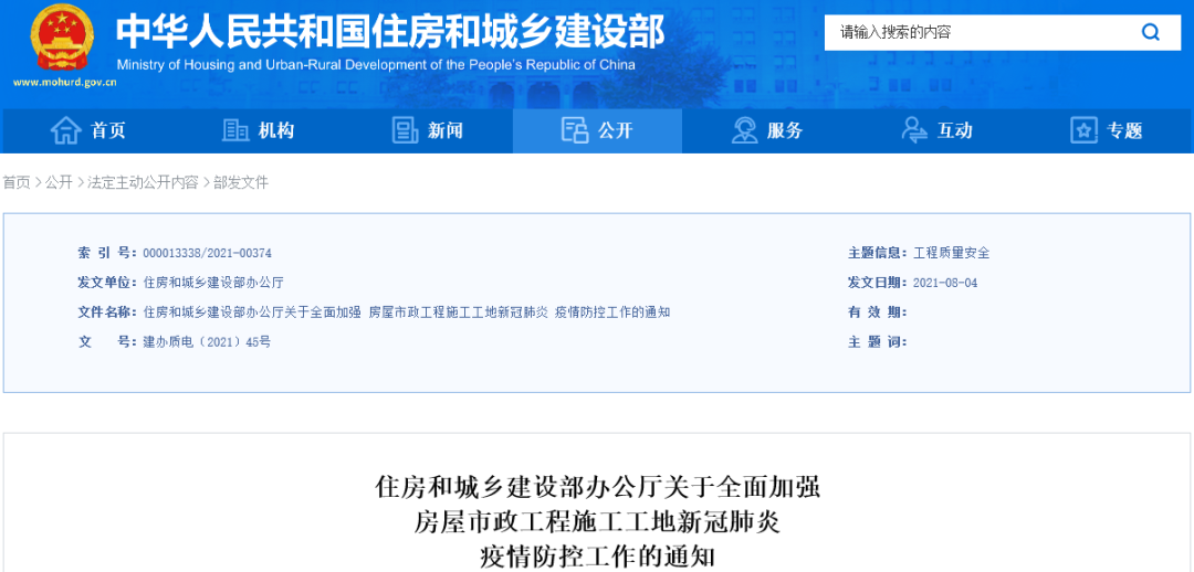 住房和城乡建设部要谴责面增强衡宇市政工程施工工地疫情防控事情