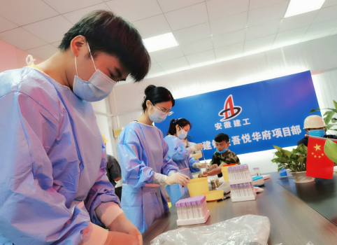凭证《安徽二建公司“我为群众办实事”实践运动计划》文件精神,6月3日上午,铜陵吾悦华府项目部特邀铜陵市疾控中心职员来项目,为一线工人举行免费体检。