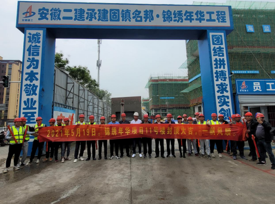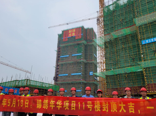 5月19日上午 ,陪同着泵车及罐车的启动 ,五分公司承建的“名邦·漂亮年华项目”11#楼最先封顶施工 。