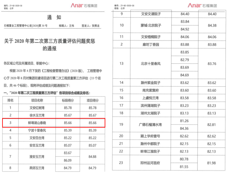 本次检测涉及33个项目、46个标段、39家施工单位 ,检测方接纳随机抽取的步伐 ,凭证统一标准、统一标准举行检测 ,检测数据实时上传 ,确保检测效果公正公正 ,评估分为工程质量实测实量、混凝土检测、清静文明施工、质量危害防控四个部分 ,检测效果如实反应各工程的现实验工质量水平。安徽二建公司承建的蚌埠湖山春晓项目在检测中综合得分85.66分 ,位列第三名 ,受到建设单位的转达表扬和奖励 ,为公司赢得了社会信誉 ,同时也为石榴集团下一步合作涤讪了坚实基础。