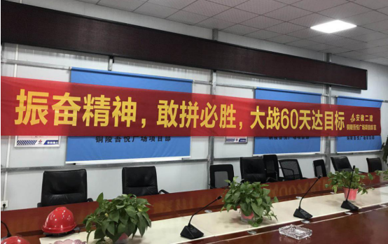 铜陵吾悦广场项目妄想完成竞赛产值6000万,为包管该目的的完成,项目认真人与劳务班组签署劳动竞赛责任状,对体现优异的班组予以奖励,现场悬挂种种条幅宣传大干60天劳动竞赛精神。