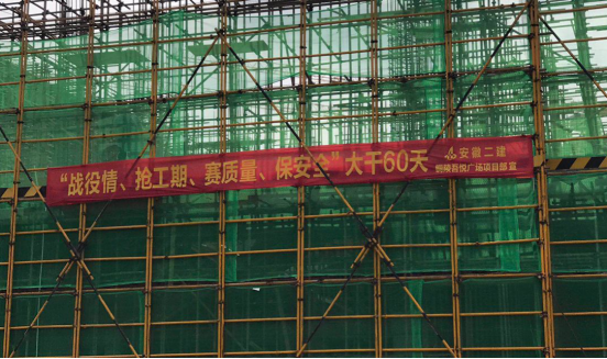 现在, 铜陵吾悦广场项目全体管理职员公司战争情、抢工期、赛质量、保清静口号的鼓舞下, 发挥“特殊能受苦,特殊能战斗”的企业精神,顶烈日战酷暑,二、白加黑,尽职尽责,力争在施工产值、清静、质量和职工步队稳固等各项事情取得好的效果。
