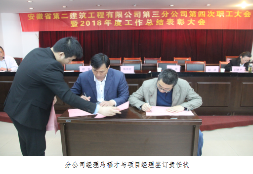在分公司职工大会上 ,分公司司理马福才与参赛的各项目司理签署了劳动竞赛责任状。其中阜阳吾悦广场项目为新城控股开发 ,是分公司首次与上市地产公司合作 ,工期紧、使命重 ,项目司理体现一定会不折不扣的完成劳动竞赛责任状的内容 ,做到比、学、赶、帮、超 ,塑造二建优异形象。其他项目司理也一致体现会认真贯彻职代会精神 ,起劲响应劳动竞赛招呼 ,为完成公司年度指标添砖加瓦 ,为党的98岁华诞送上一份生日祝福。