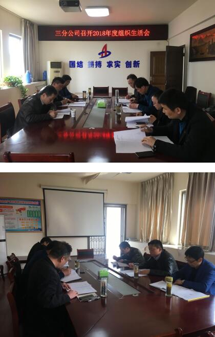 3月28日下昼,三分公司在五楼聚会室召开2018年度组织生涯会,公司党委副书记、纪委书记仇多维、公司总工程师邱立龙,党委事情部主任施用宏到会指导,聚会由支部书记陈习武主持,分公司向导班子全员参会。