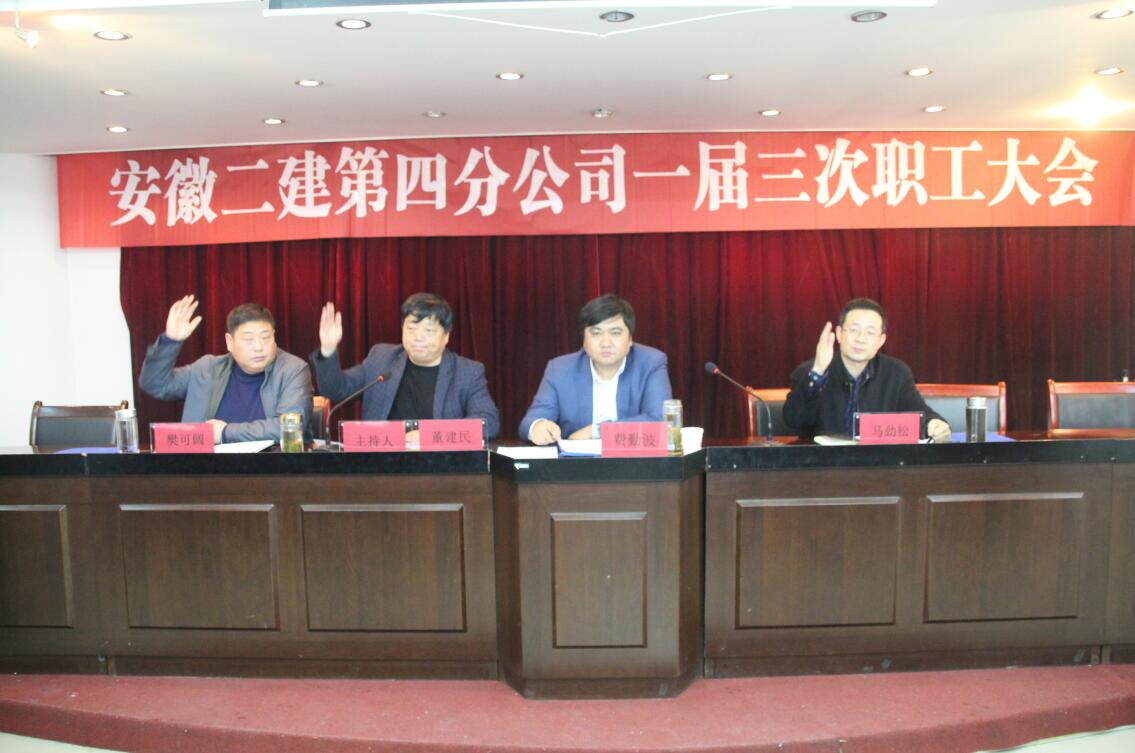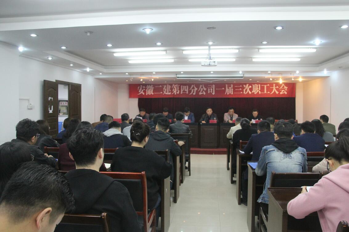 3月22日上午,安徽二建第四分公司顺遂召开了一届三次职工大会,公司党委副书记、纪委书记仇多维,总司理助理、工会副主席蒯家江,党委事情部主任施用宏到会指导,分公司52名职工参会,支部书记董建民主持大会。